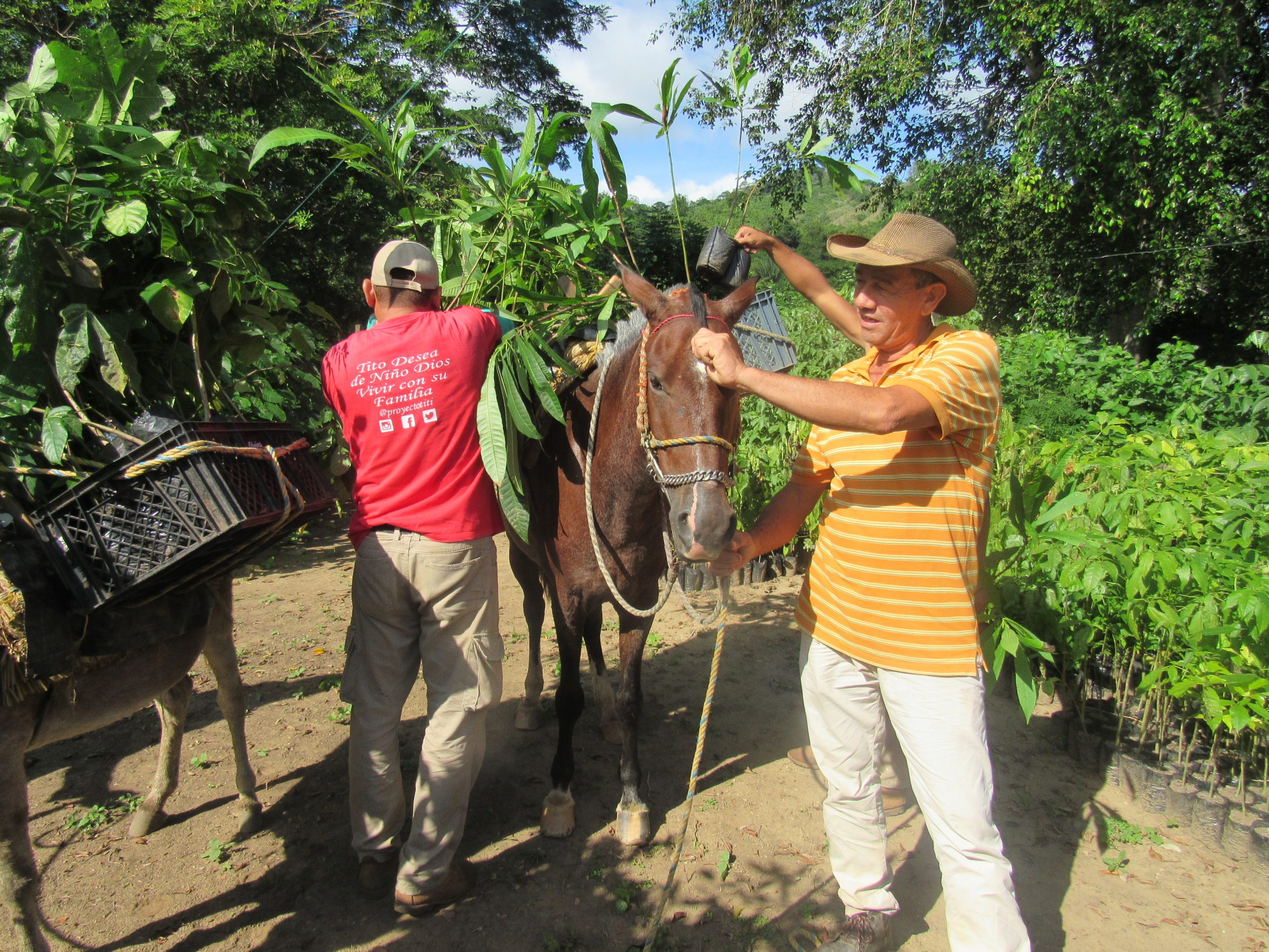 Last year, Carlos signed an agreement with Proyecto Tití, an organization that protects endangered cotton-tops, pledging to conserve the forest on his land and to participate in Proyecto Tití’s reforestation program. As Colombia’s forests have depleted, primarily for agriculture and cattle ranching, cotton-tops have become trapped in isolated forest islands. Because cotton-tops never come to the ground, they need continuous forest to survive, so one of Proyecto Tití’s primary strategies is to bridge these islands. They work with farmers, including Carlos, to protect, grow, and connect the forests on their land.
