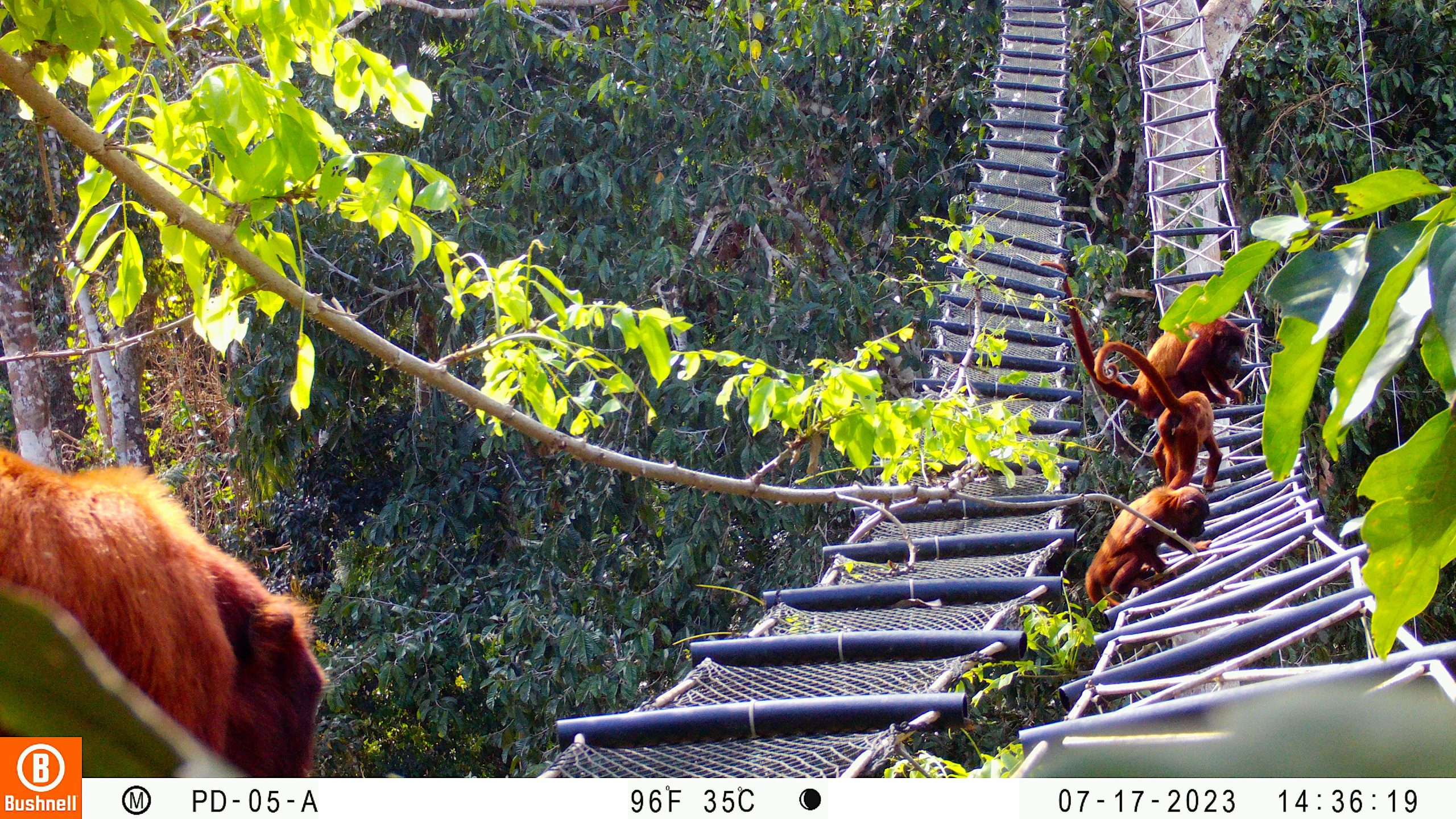 Red howler monkeys using the canopy bridges.