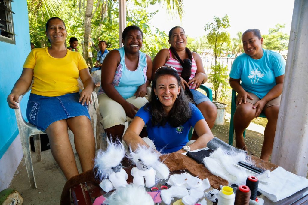 Rosamira Guillen, Executive Director of Proyecto Tití, with local female artisans