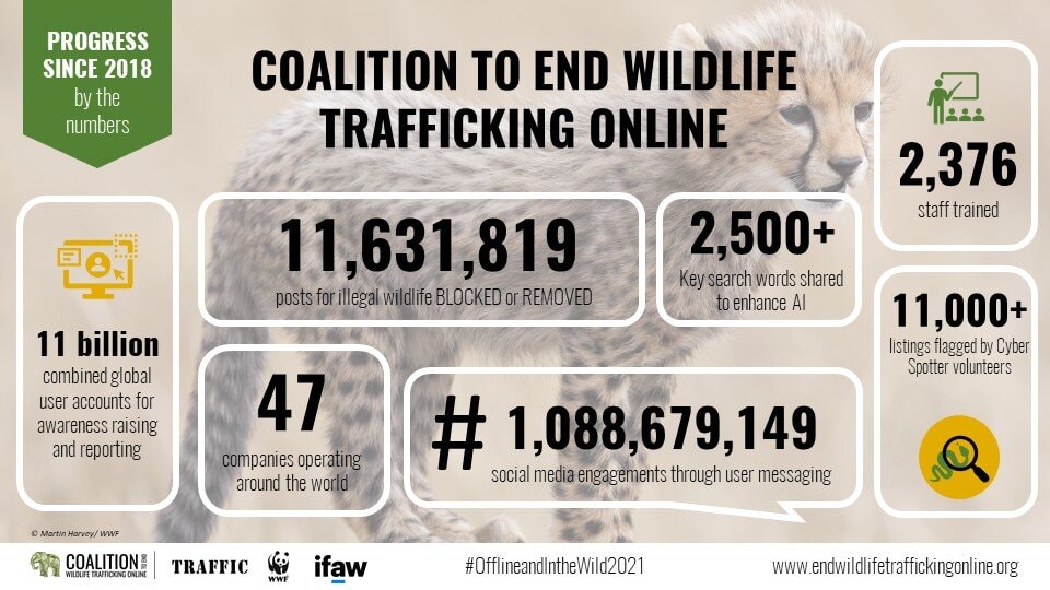 Spikes in illegal wildlife trafficking on Facebook, eBay, and various social media platforms have spurred the Coalition to hold these platforms accountable. To do this, the Coalition encourages these companies to provide more information about their efforts to stop illegal wildlife sales and train their moderators to spot illegal activity and coordinate with law enforcement.