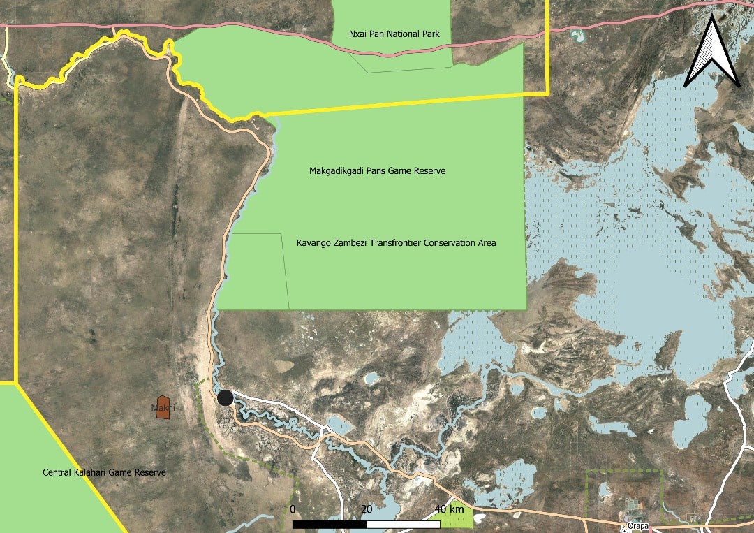 Map of Makgadikgadi Pans National Park © Elephants for Africa