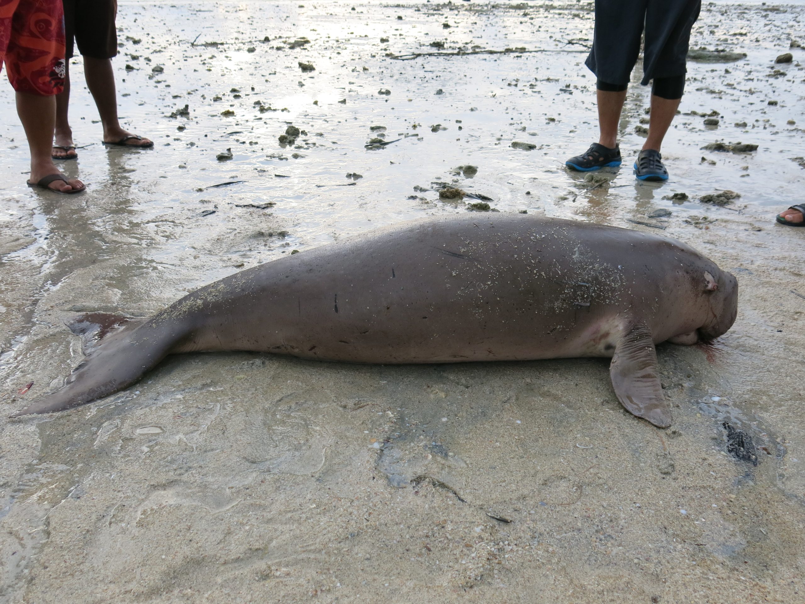 A dugong carcass stranded on the beach.
