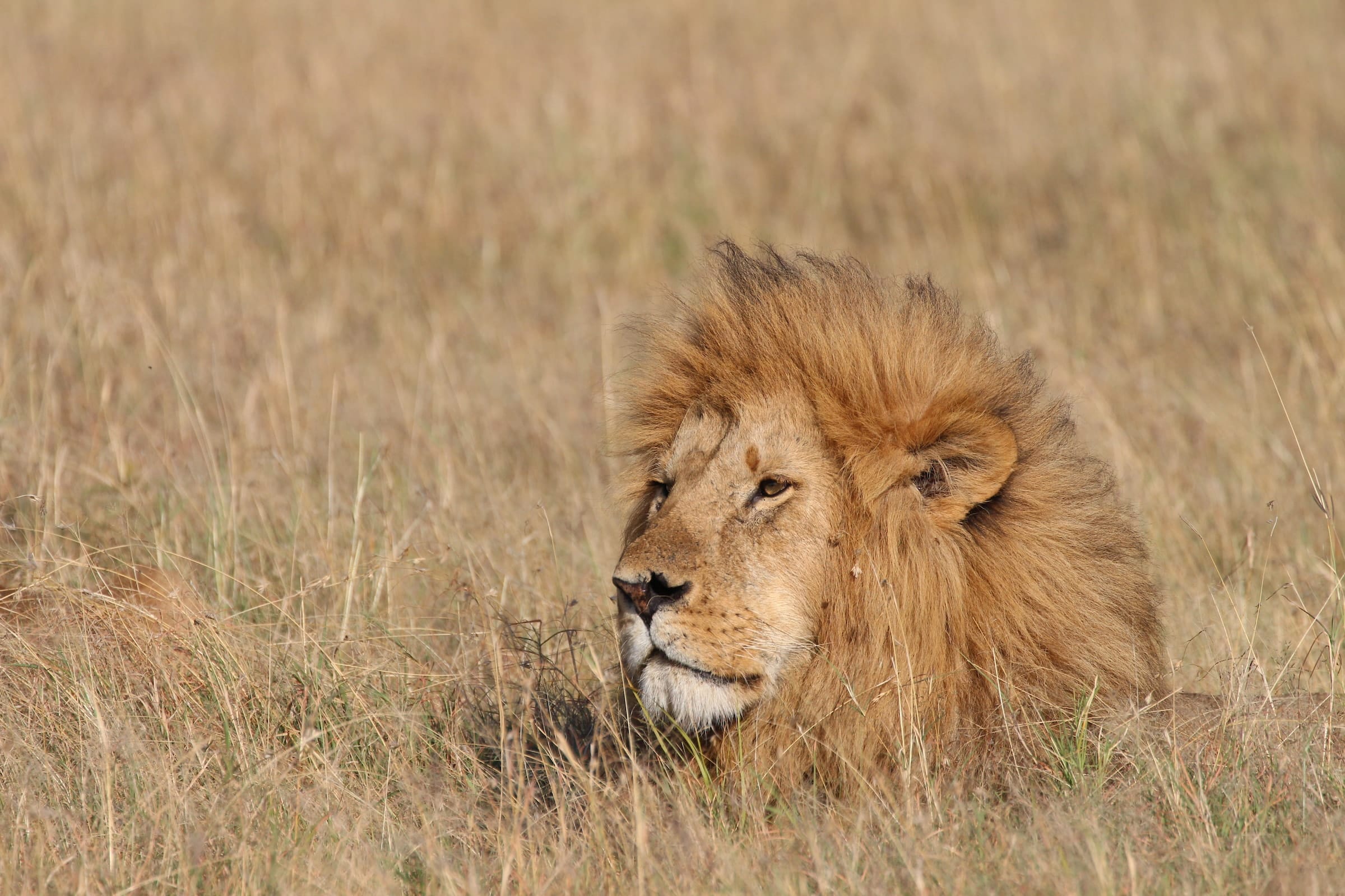Once male lions are at their peak maturity, they parade a full and impressive mane to assert their dominance and attract females. Their manes also protect their neck and head from injury during fights with other lions and predatory competition. As a lion becomes older and harbors more testosterone, its mane becomes darker in color.