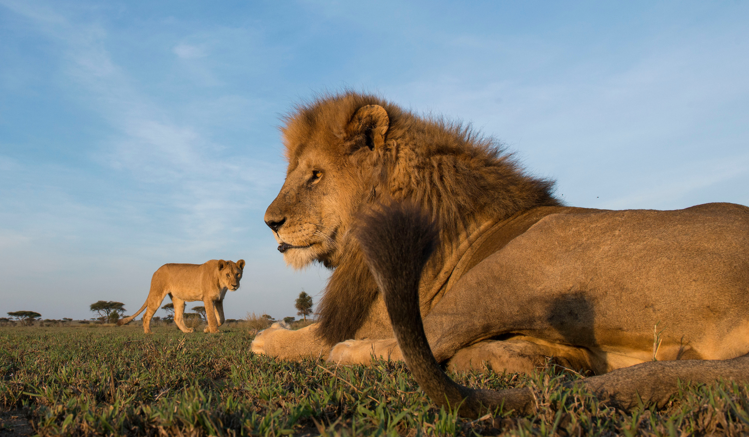 Male lions’ manes are a unique characteristic that also tell a story. When young, both males and females appear the same. But at about one year of age and into their sub-adulthood of three to four years, young males develop fledgling growths of a mane, sometimes with a curious cowlick of fur atop their head.