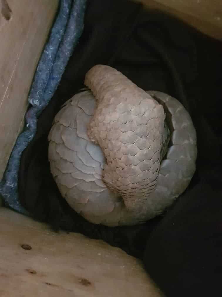A box was handed over to Tikki Hywood Foundation from the authorities. Inside was a tightly curled mother pangolin, wrapped around her young baby. More than likely they were starving. Had it been days or weeks since these two endangered animals had been plucked from their home, forced into a sack, and kept from any and all source of natural food and or water? It was impossible to know.