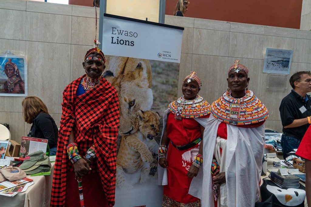 The Mama Simbas and Jeneria Lekilelei of Ewaso Lion Project welcome guests at Expo.