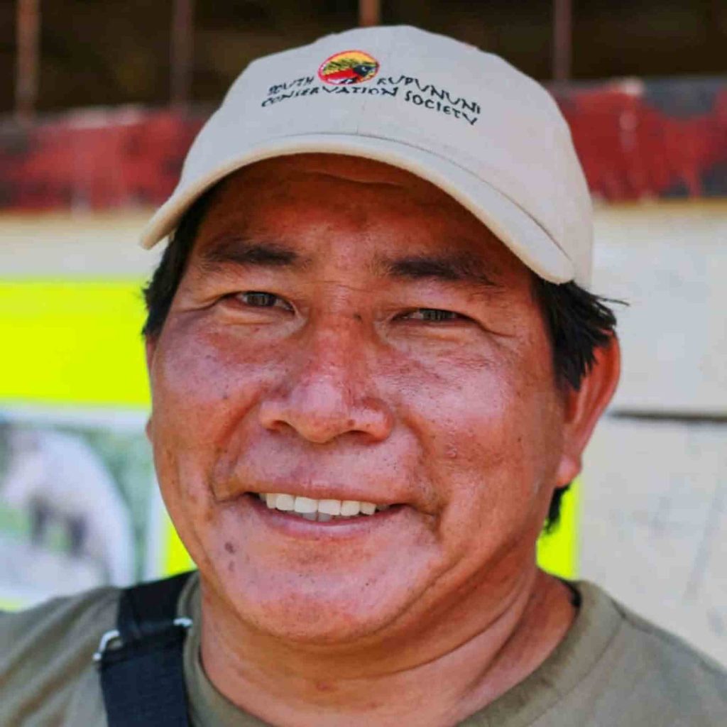 Angelbert Johnny has been working with the small grassroots organization, the South Rupununi Conservation Society (SRCS), since it was formed 22 years ago. The society started when friends and colleagues saw the depletion of wildlife in their territory. Angelbert’s earliest conservation-related work was to monitor and protect the critically endangered Red Siskin, and today he is the Project Manager for the SRCS Giant Anteater and Giant Armadillo Community Research and Conservation Programme. In the interim, he has gained deeper skills and knowledge when conducting field mapping, cultural research and monitoring of the Indigenous territories of the South Rupununi with the South Rupununi District Council. This led to work defending the rights of his people to their ancestral lands, and leading the struggle for land recognition. Today, Angelbert acts as an advisor to local village councils on land issues. He also works with villages to advocate for community conserved areas to protect vulnerable habitats and species.